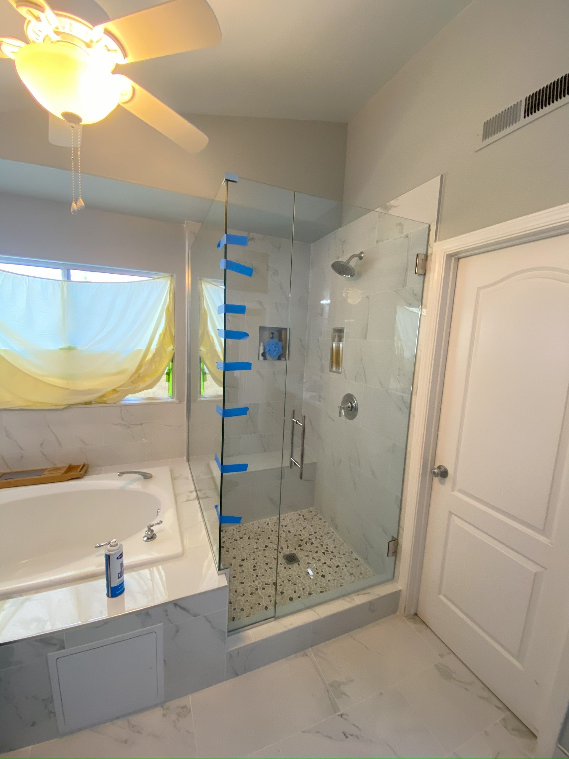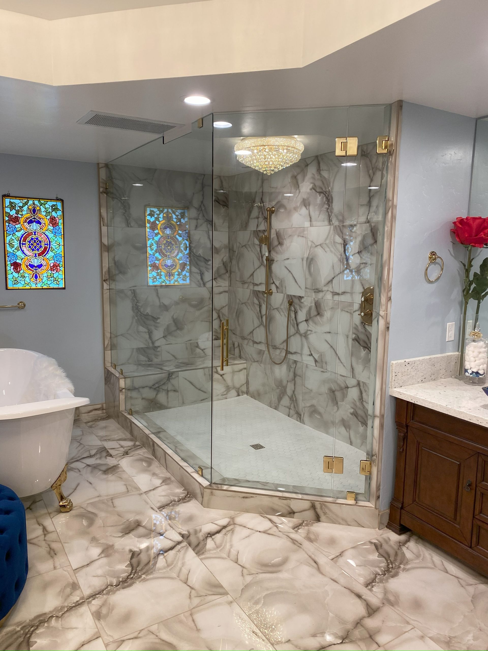 Although you cannot drill into tubs, we can work with framed, semi-framed and frameless enclosures over tubs